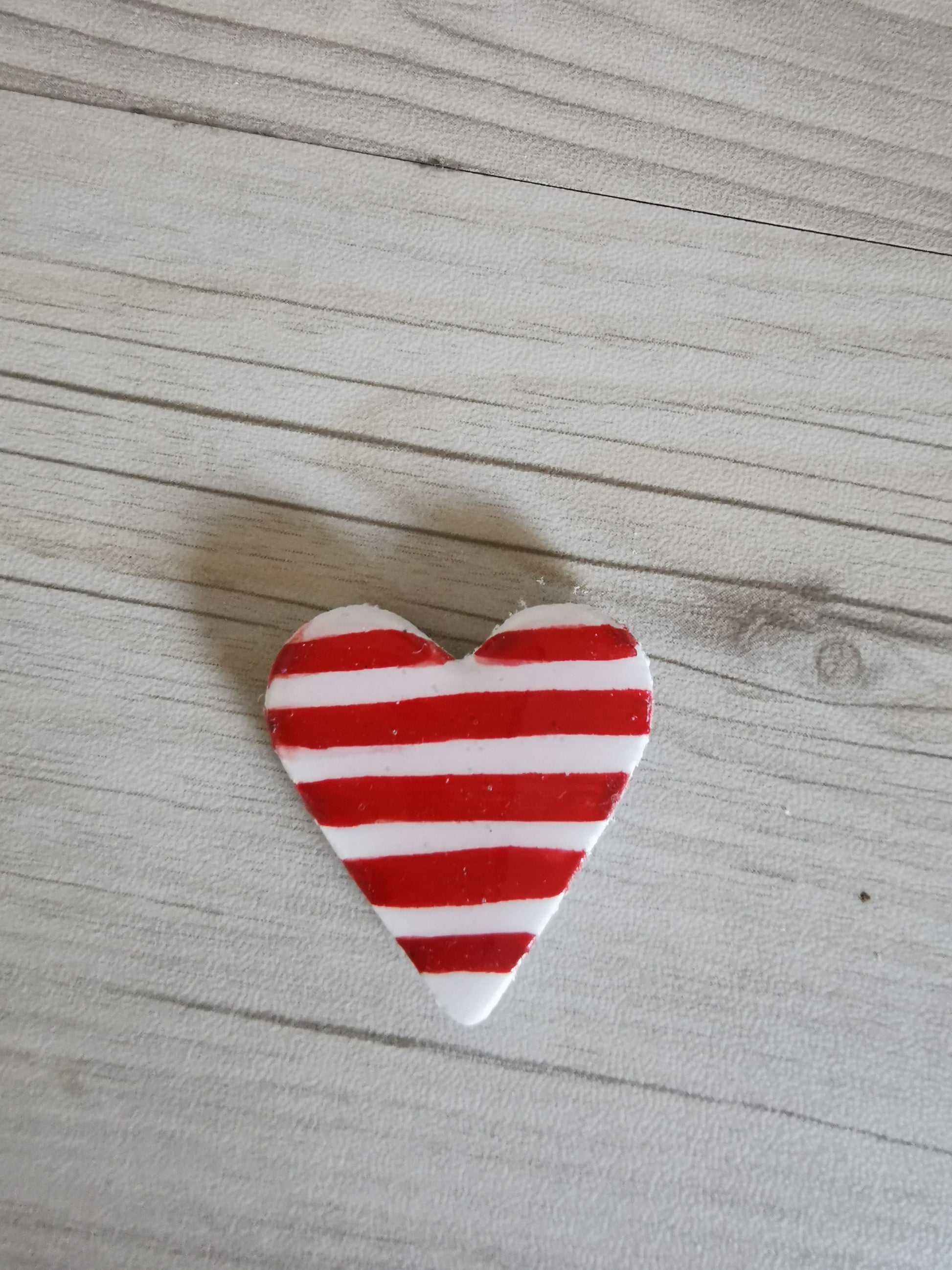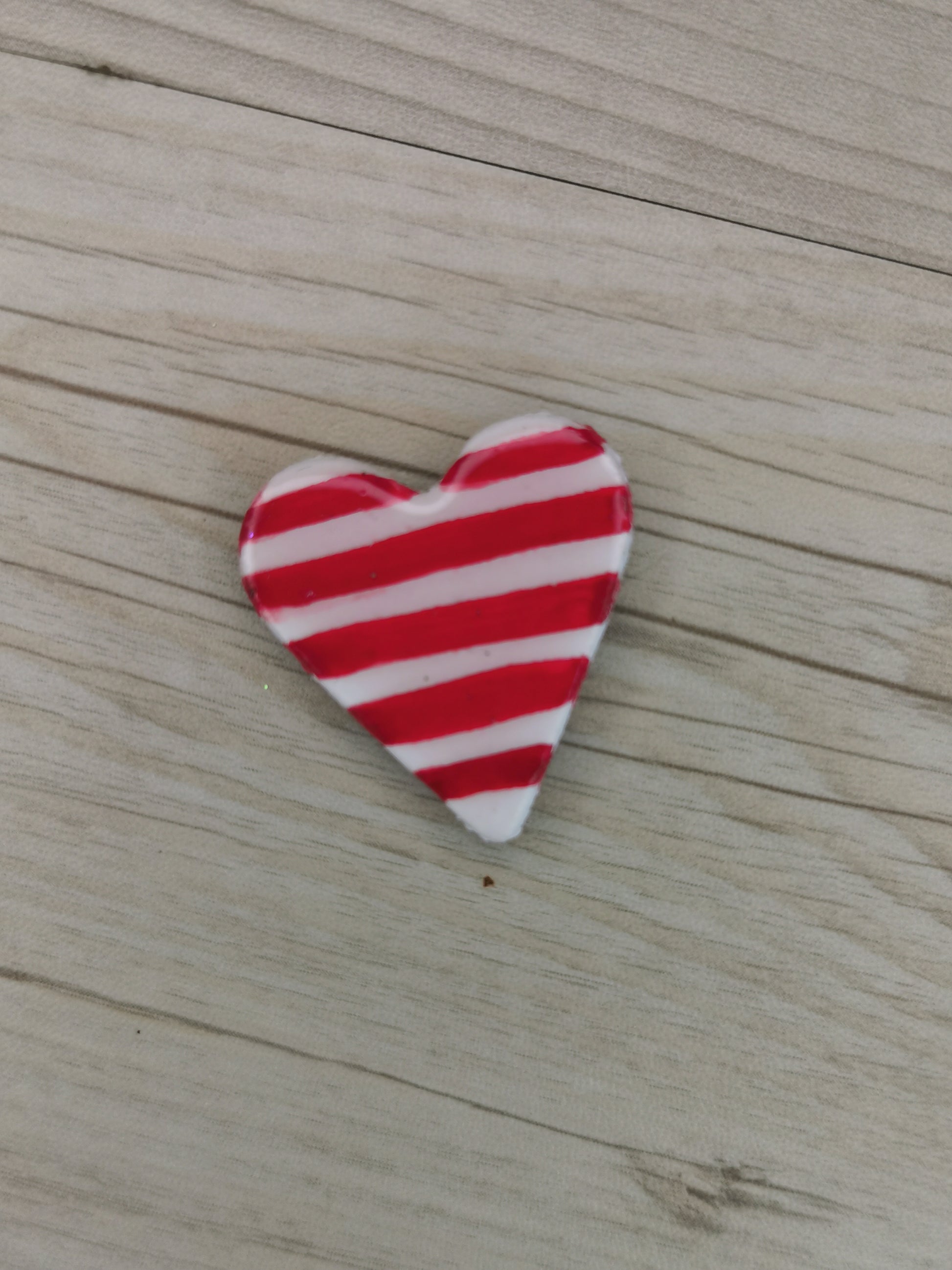 Pin's aimanté coeur rayé rouge et blanc